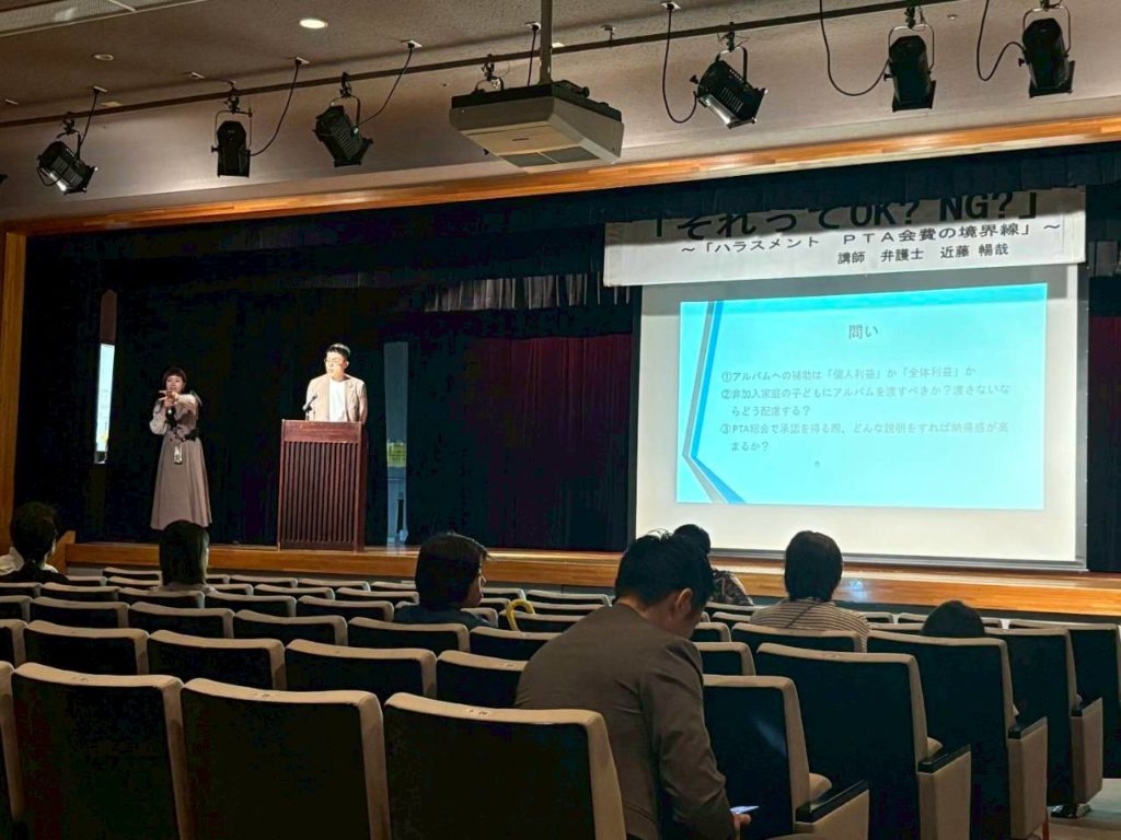 近藤弁護士による「それってOK?NG?~ハラスメント PTA会費の境界線~」講演会を開催しました。